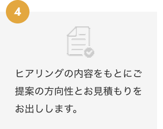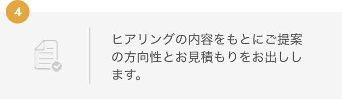 ヒアリングの内容をもとにプランのご提案とお見積もりを算出します。ご了承いただけましたら契約を締結させていただきます。