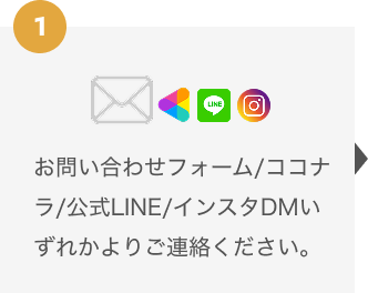 まずは公式LINE・ココナラ・お問合せフォームからお気軽にお問合せください。