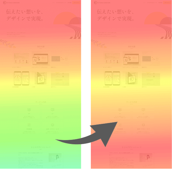 ユーザーがよく見ている箇所、クリックした場所、どこまでスクロールしたかといった行動を色と数字で見える化できるヒートマップツールを導入できます。見える化し改善を重ねていくことで、より集客につながるサイトを目指します。